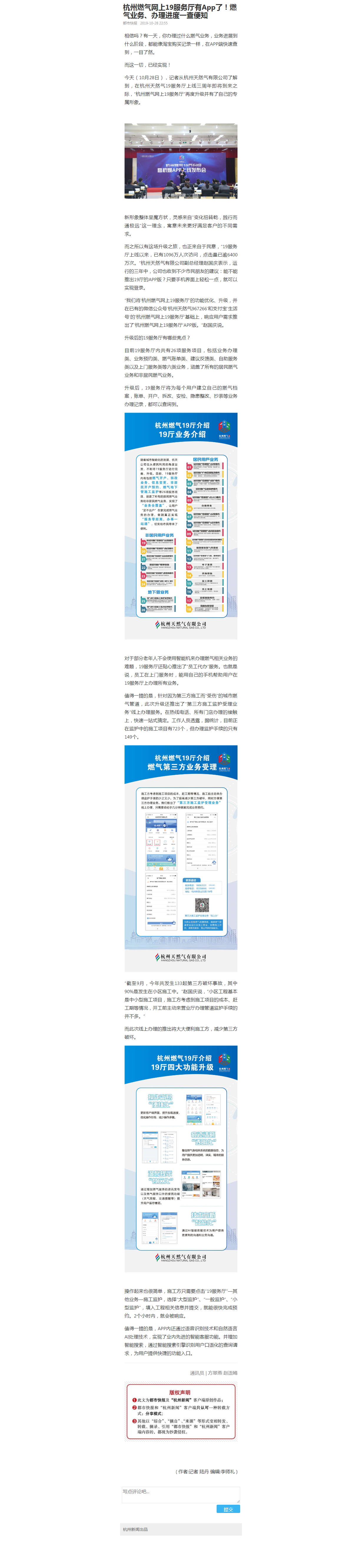 而之所以有這場(chǎng)升級(jí)之旅,也正來自于民意,“19服務(wù)廳上線以來,已有1096萬人次訪問,點(diǎn)擊量已逾6400萬次。”杭州天然氣有限公司副總經(jīng)理趙國(guó)慶表示,運(yùn)行的三年中,公司也收到不少市民朋友的建議:能不能推出19廳的APP版?只要手機(jī)界面上輕松一點(diǎn),就可以實(shí)現(xiàn)登錄。