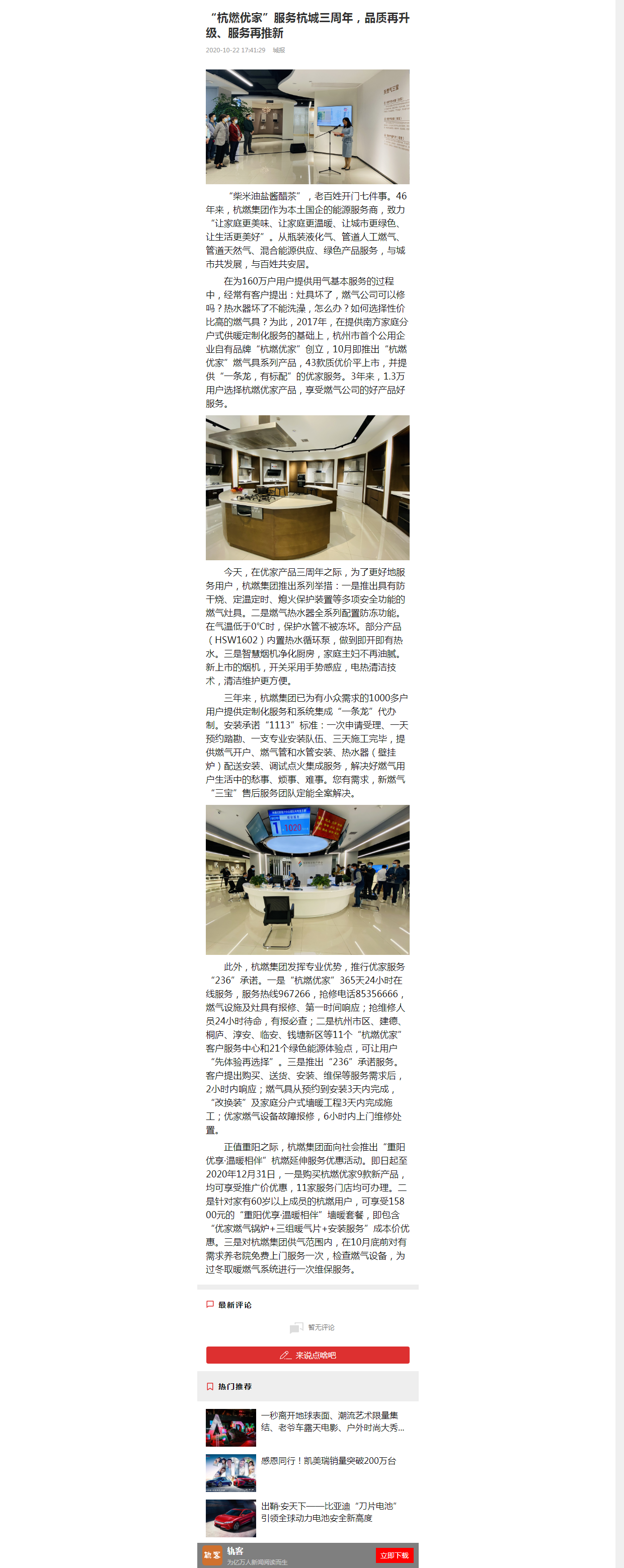在為160萬(wàn)戶用戶提供用氣基本服務(wù)的過(guò)程中,經(jīng)常有客戶提出:灶具壞了,燃?xì)夤究梢孕迒?熱水器壞了不能洗澡,怎么辦?如何選擇性價(jià)比高的燃?xì)饩?為此?/FONT>2017年,在提供南方家庭分戶式供暖定制化服務(wù)的基礎(chǔ)上,杭州市首個(gè)公用企業(yè)自有品牌“杭燃優(yōu)家”創(chuàng)立,10月即推出“杭燃優(yōu)家”燃?xì)饩呦盗挟a(chǎn)品,43款質(zhì)優(yōu)價(jià)平上市,并提供“一條龍,有標(biāo)配”的優(yōu)家服務(wù)。3年來(lái),1.3萬(wàn)用戶選擇杭燃優(yōu)家產(chǎn)品,享受燃?xì)夤镜暮卯a(chǎn)品好服務(wù)。